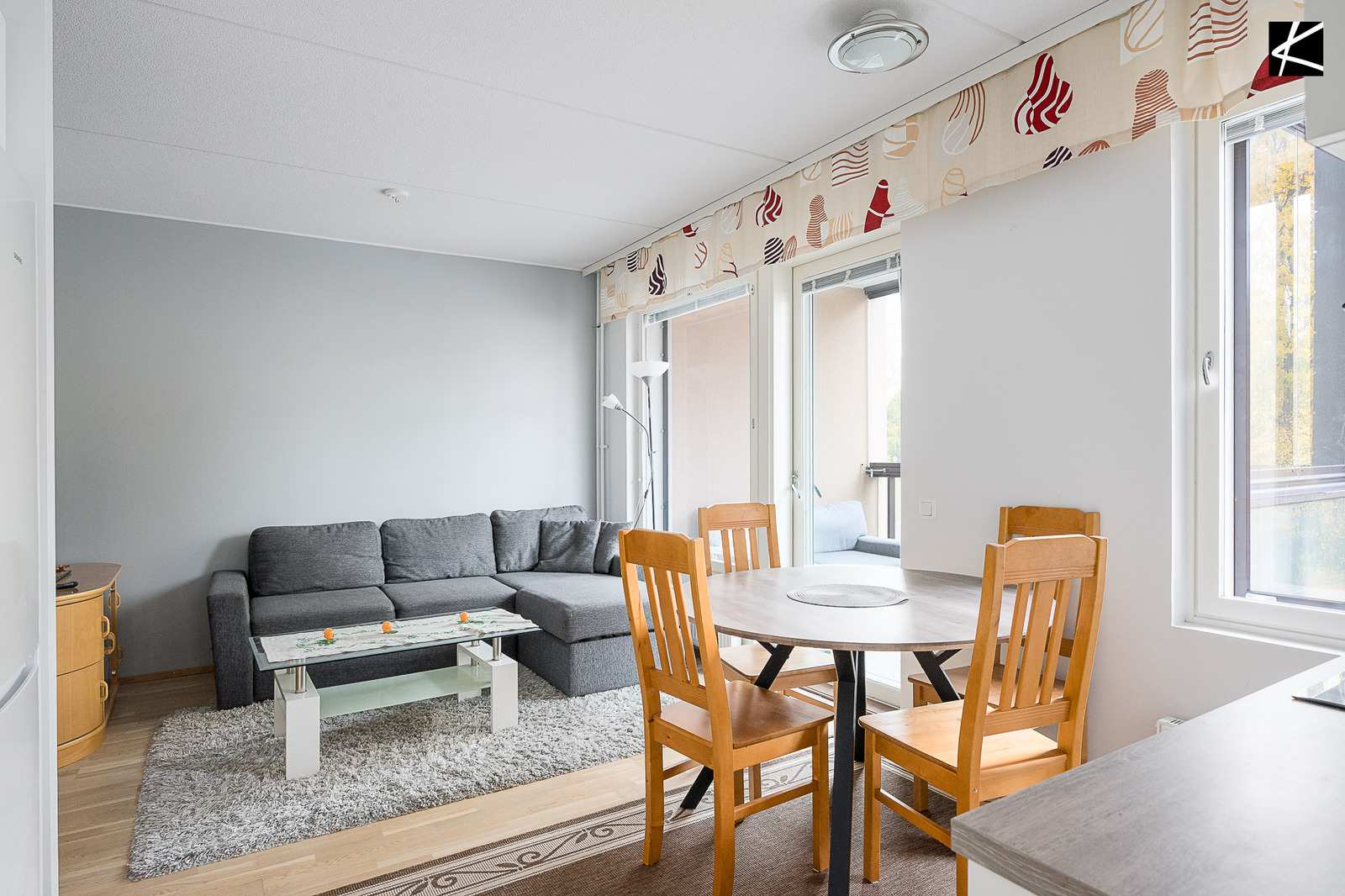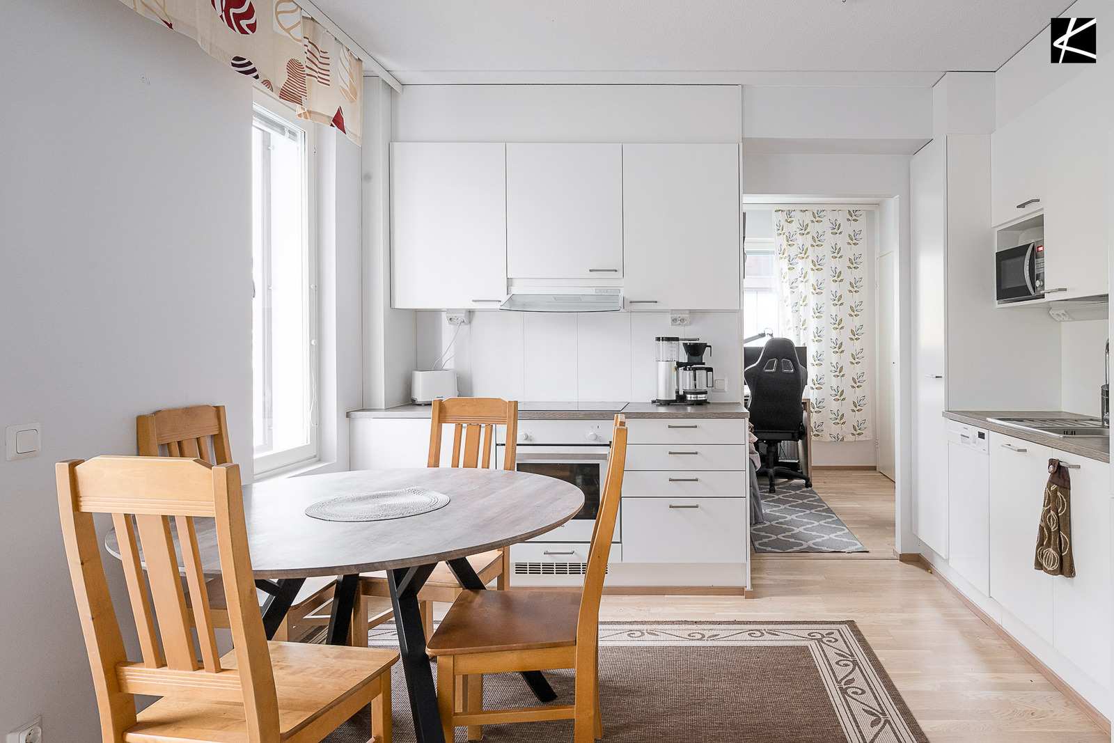| Muuta kauppaan kuuluvaa | Kaapistot, sälekaihtimet/rullaverhot, naulakko, kiinteät valaisimet |