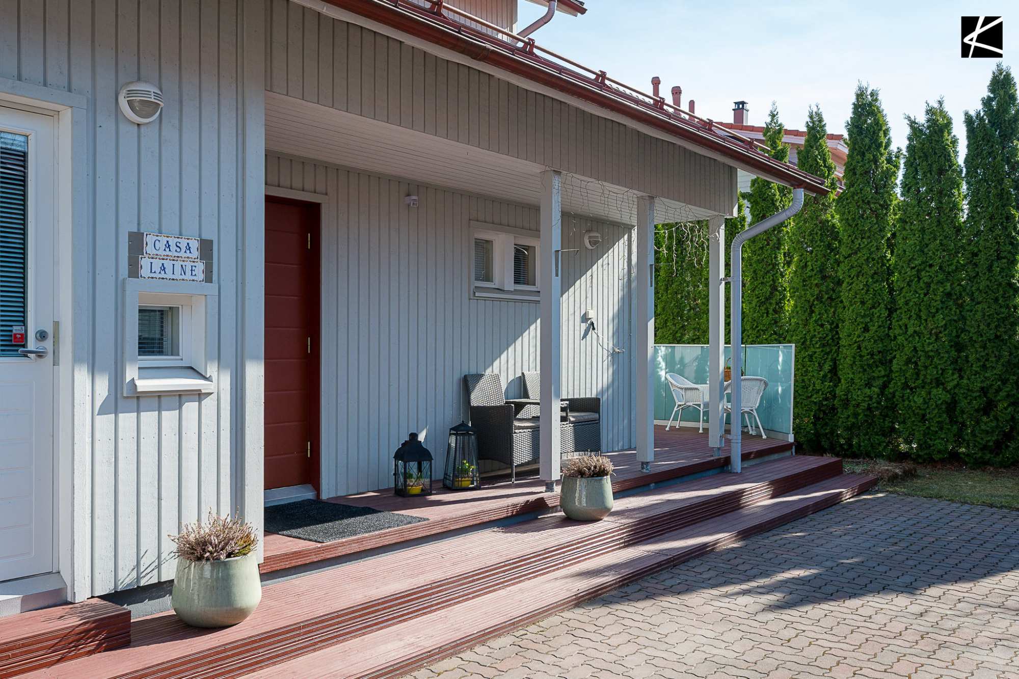 Kodin pohjaratkaisun suunnittelussa on kiinnitetty erityistä huomiota sisä- ja ulkotilojen toimivuuteen sekä avaruuteen. Rauhallisesta sijainnistaan huolimatta koti sijaitsee lähellä Hyrylän palveluja, kouluja, päiväkoteja ja alueelta on hyvät kulkuyhteydet. Omaan pihaan kuljetaan pienen pihakujan kautta, jossa on oma autokatos kahdelle autolle.