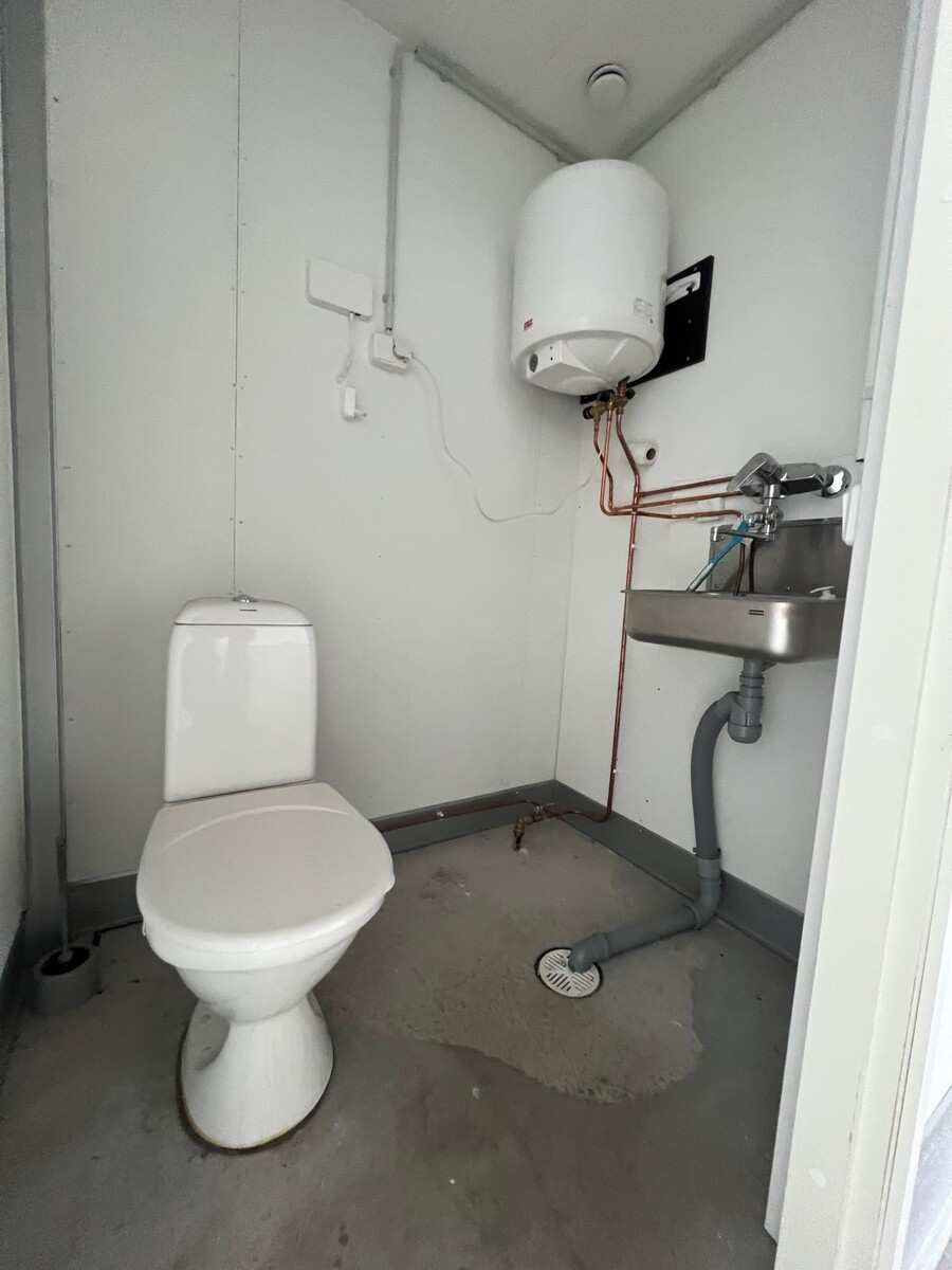 WC-tila, jossa lämminvesivaraaja ja lavuaari